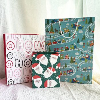 2023 Christmas Collection Handmade White Cardboard Kraft Paper Bag Printed Christmas Design for Clothing Store Apparel Gift