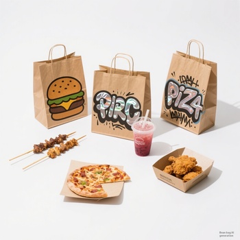 Custom Kraft Paper Bag Handbag for Catering and Takeaway for Milk Tea Coffee Baking Batch Gift Bag